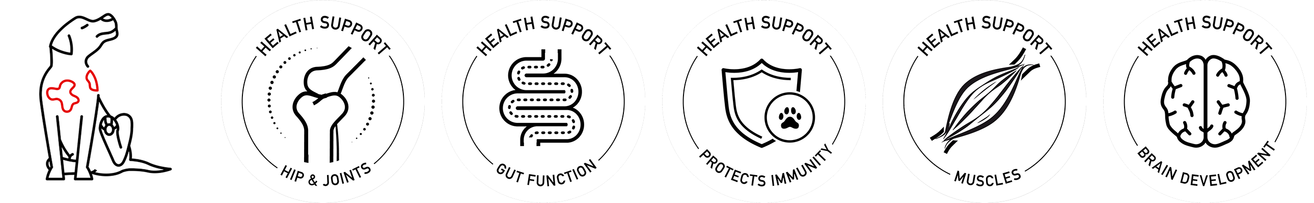 肉類(新鮮家禽肉50%、乾燥家禽肉16%、乾燥魚肉5.5%、水解肝臟3%)、米、玉米、家禽脂肪、甜菜根渣、亞麻籽、蘋果果渣、三文魚油0.5%、蛋、酵母、礦物質、菊苣根0.2%、芋花0.03%、天然抗氧化劑複合物(0.02%)、迷迭香提取物(0.01%)